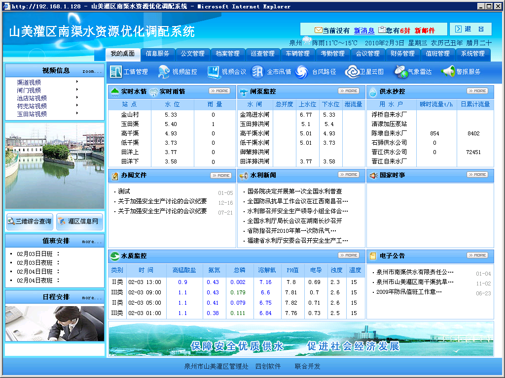 在综合利用水资源方面,四创软件推出了库区水资源调配与管理系统,实现时间和空间上对可调度的水量进行干预分配,为水利工程、防洪和供水安全的科学管理提供了强有力的技术保障,为建立适应市场经济要求的用水体系提供了重要的科技支撑作用,在实际工作中发挥了很大效力,有效保持水源区和受水区生态和经济的可持续发展。更多库区水资源调配与管理系统详情访问http://www.strongsoft.net:10001/349.htm