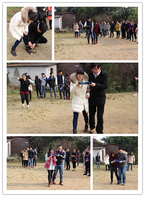 “棋盘寨”是一家掩映在绿水青山间的省级“森林人家”示范点,空气清新、环境优美。看着绿意盎然、秀丽的景色,大家心境也顿时开朗起来。活动在主持人精彩的开场白中正式拉开帷幕,大家围坐成一圈,首先进行自我介绍,每个人都绞尽脑汁想着如何用独特的方式让大家牢记自己的名字,介绍过程中有人引经据典,时不时引发一阵爆笑。紧接着,“两人三足”活动火热开展,主持人一声令下,大家现场速配搭档,抓紧练习步伐的一致性。活动开始,每组成员按节奏紧步前进。观众的呼喊声、鼓掌声、惊叹声此起彼伏……活动中大家能够体验齐心协力的合作精神,一下子活跃了现场的氛围,夺冠小组的男生还获得了送女生玫瑰的机会。