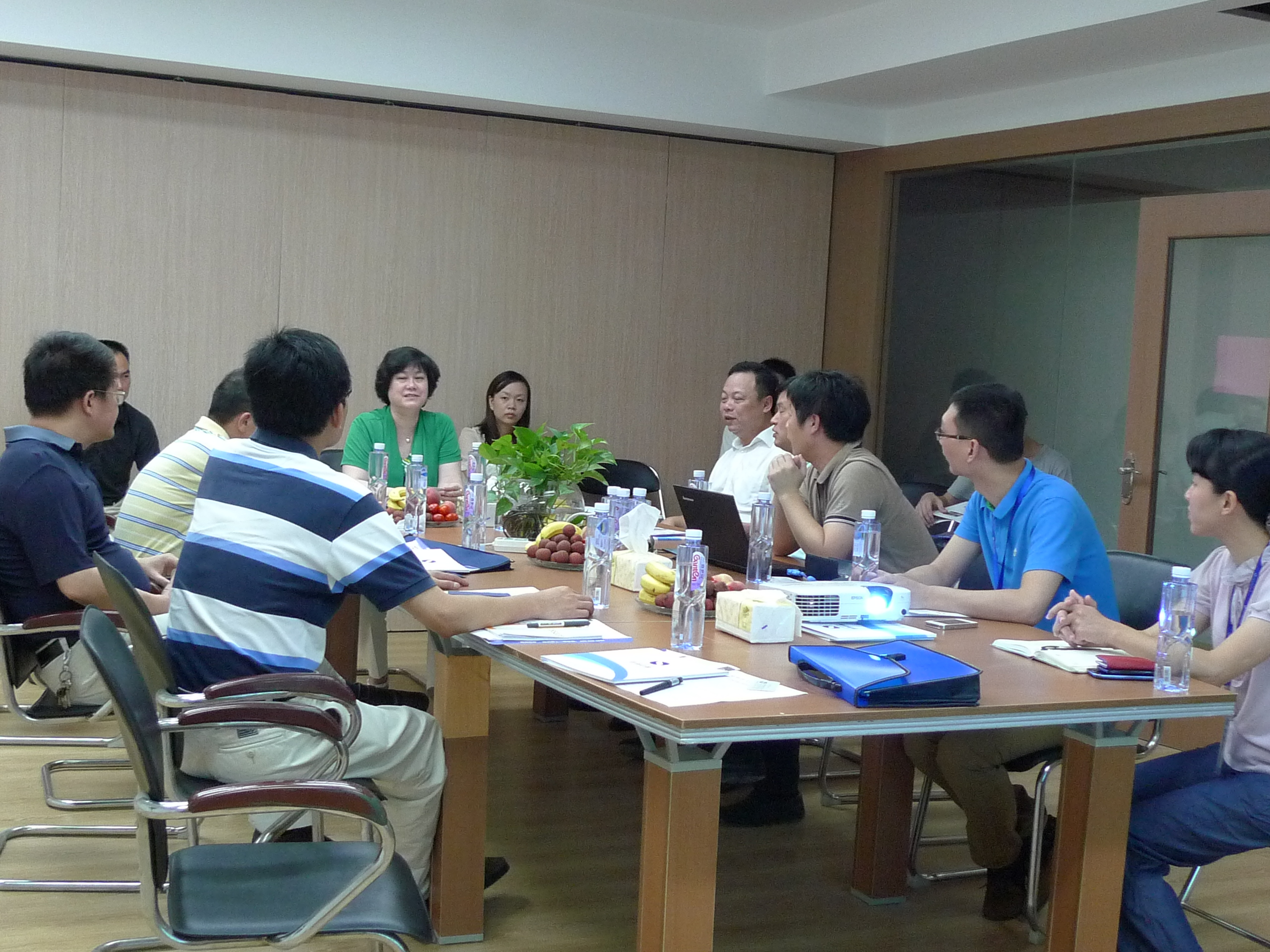 2013年7月10日上午,福州市人民政府陈晔副市长、王国华副秘书长、黄炳新副调研员、福州市外经贸局梁勇副局长等一行到我司总部新址——海西高新技术产业园创业大厦调研工作。