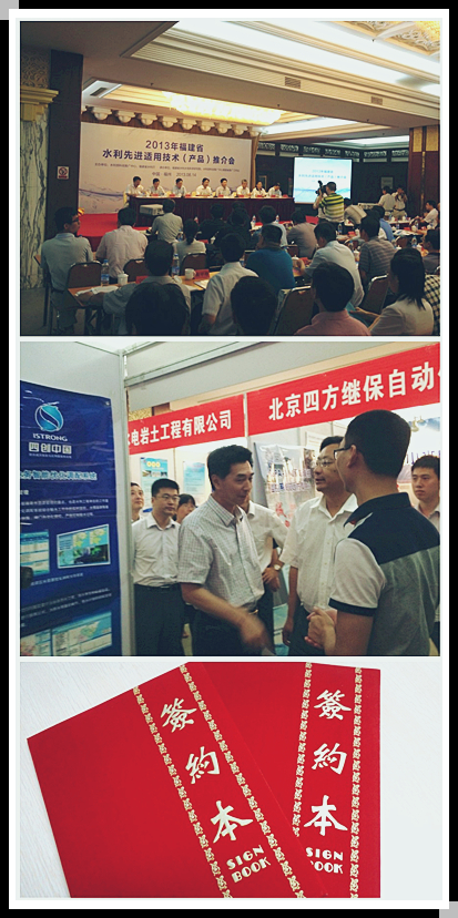 2013年8月14日,四创软件参加2013年福建省水利先进适用技术(产品)推介会。现场与福建省防汛办签订合作协议,并对我们的产品——“水利工程建设项目监管平台”进行推介。