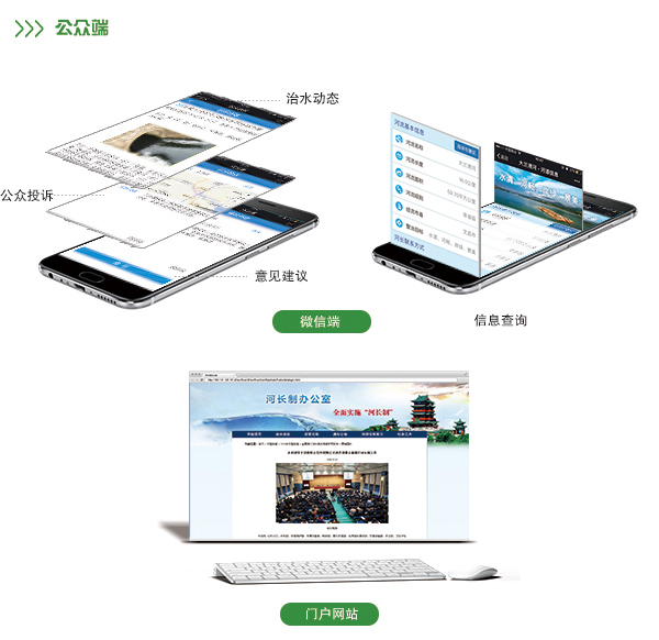 基于微信平台实现信息发布、公众投诉等应用,引导公众参与河湖治理,实现全民治水。