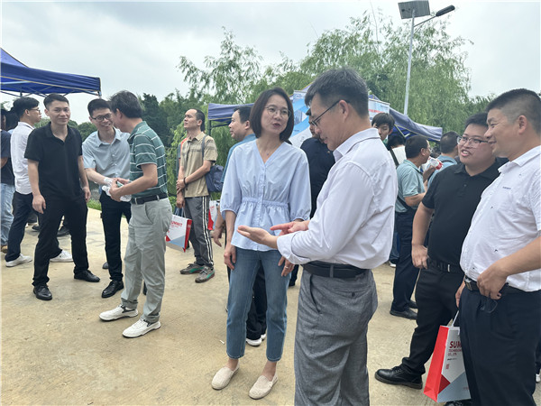 在演练现场观摩区,四创科技携子公司博雅天安带来的“数字孪生九龙江北溪建设先行先试项目”“福州溪源溪流域数字孪生平台”“小流域山洪灾害‘四预’平台”等项目平台建设成果,基于数字孪生流域开发完善流域山洪灾害“四预”功能,为进一步提升山洪灾害防御态势分析研判和预警决策能力提供参考。其中,“数字孪生九龙江北溪”项目入选水利部《数字孪生水利建设十大样板名单 (2023年)》及《数字孪生水利建设典型案例名录(2023年)》。带来的“地埋式液位监测仪”“雷达流量计”“灾害风险预警终端”“水旱灾害预警展播终端”等核心产品,覆盖台风、暴雨、高温、雷电等多种灾害的可视化预警提醒和避险指导,辅助相关部门单位提高灾害防范和应急响应能力。丰富的展示内容吸引了演练领导莅临展位咨询交流。