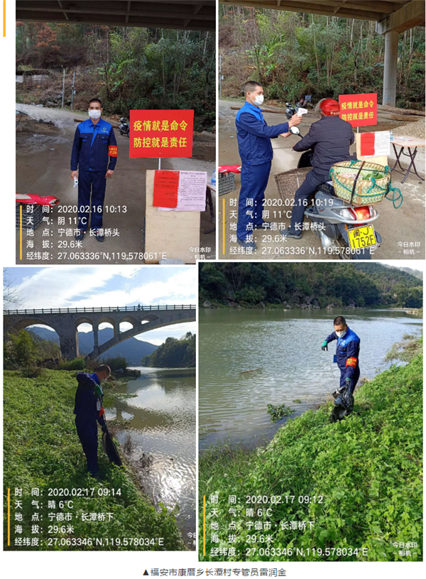 福安市河湖物业化专管员们始终坚持“守河有责、守河负责、守河尽责”,用像保护眼睛一样保护河道,守护家乡一汪清水,主动作为、敢于担当、踏实务实,为建设生态福安、环保福安而不懈努力。面对疫情,他们众志成城、团结一心,相信一切终将过去,定会春暖花开。