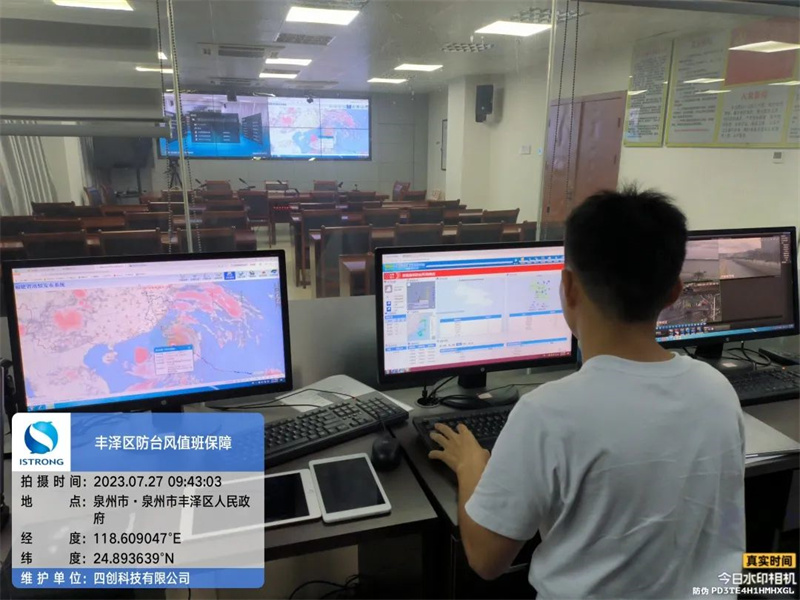 四创科技运维人员及带班领导组成值班团队,在福建近30个省、市、区、县指挥中心与业主团队一同值守,高度警惕,严阵以待,迎战台风。对于客户每一次需求,四创团队及时响应,提供专业、可靠的技术支撑,第一时间发布预警信息,助力多部门协同指挥、联合调度,提升省市县三级防台、防汛、防涝水平。