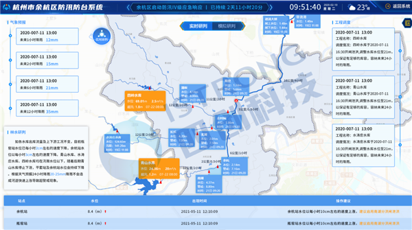 2020年,四创科技主汛期助力余杭区应急管理局筑牢居民生命防线