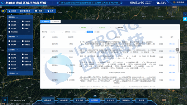 杭州市余杭区应急管理局上下全员严阵以待,以防汛抗旱业务为核心,充分运用区防汛防台专题系统,依托大数据收集、物联网感知、人工智能、云计算等多项新技术,整合汇集应急、气象、林水、自然资源等9个部门数据,建立涵盖水雨情、土壤墒情、地质灾害隐患点在内的监测感知体系,实现防汛防台抗旱“看得到、判得准、叫得动”,为风险评估、抢险救灾提供决策依据,奋力交出汛期高质答卷。