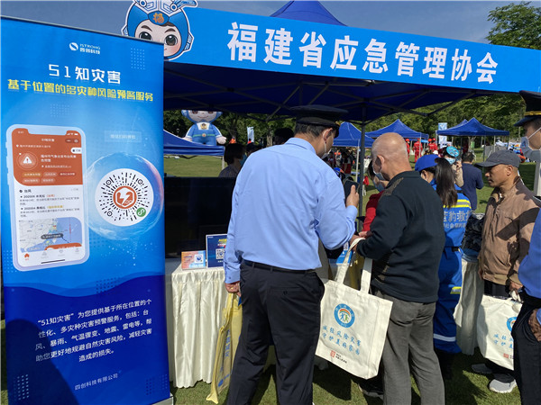 2022年5月17日上午,由福建省减灾委员会、福建省应急管理厅主办,福建省地震局、福州市减灾委员会协办,晋安区人民政府与福建省广播影视集团、人保财险福建分公司共同承办的“福建省2022年全国防灾减灾日宣传活动”在福州市晋安区牛岗山公园正式启动。四创科技应福建省应急管理协会邀请,携“知灾害”、“台风路径”、“天气说”等小程序及科普互动亮相此次活动。