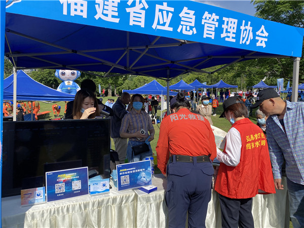 ▲福建省应急管理协会与四创科技展位民众扫码体验